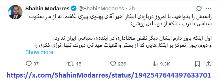 حالا دو باره چندی است این جوان جویای نام با عنوان دهانپُرکنترِ “پژوهشگر مرکز ضد تروریسم در واشینگتن” سر و کلهاش در رسانههای فارسیزبان که بر خلاف رسانههای دنیای آزاد کمترین تعهدی به راستگوئی و دفاع از ارزشهای جهانشمول بشری ندارند، پیدا شده و خیلی وقیحانهتر از کاری که در کتاب پرحجمِ کم محتوایش “در دامگه حادثه” کرده بود داد سخن میدهد و دیگر تنها به حاشای وجود شکنجه در ساواک کفایت نکرده بلکه بهصراحت از لزوم کاربرد آن دفاع میکند.