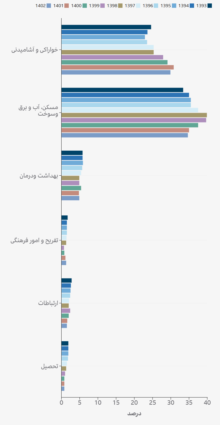 منبع: گزارش بانک مرکزی ایران – بررسی بودجه خانوار مناطق شهری در سال ۱۴۰۲