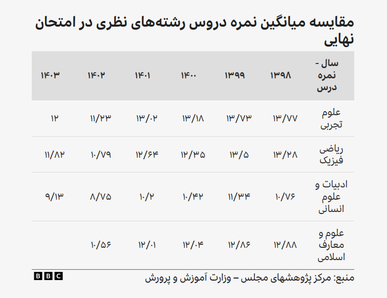 بی‌بی‌سی: گزارشی تازه از مرکز پژوهش‌های مجلس نشان می‌دهد فقر اقتصادی و کاهش بودجه‌های آموزشی، کیفیت مدارس ایران را به شدت کاهش داده است؛ به‌گونه‌ای که میانگین نمرات دانش‌آموزان سال دوازدهم در دو سال گذشته به کمتر از ۱۰ رسیده و نرخ ترک تحصیل رو به افزایش است. آیا نسل آینده ایران از آموزش جا خواهد ماند؟