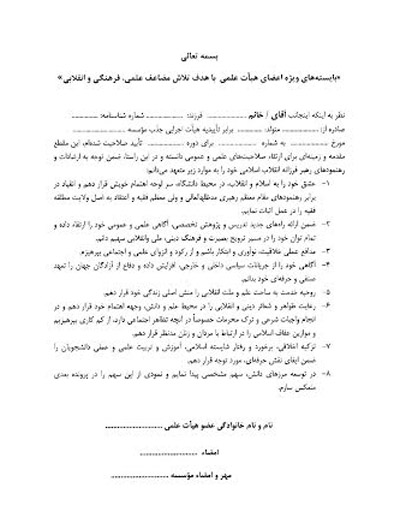 محتویات این فرم نشان می دهد حاکمیت چه نگاهی به اساتید دانشگاه دارد و چه توقعاتی را از آنها کتبا تعهد می گیرد: