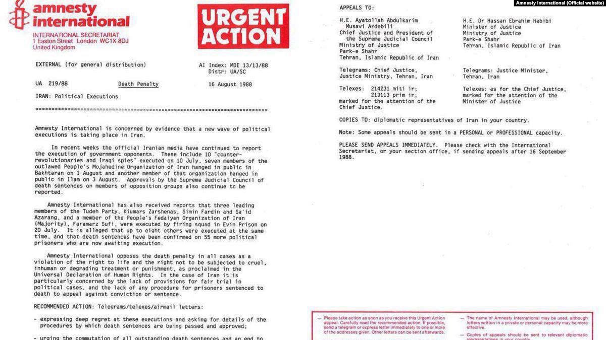 بیانیه ۳۲ سال پیش عفو بینالملل حاکی از «اطلاع مقامات» ایران از اعدامهای ۶۷ است